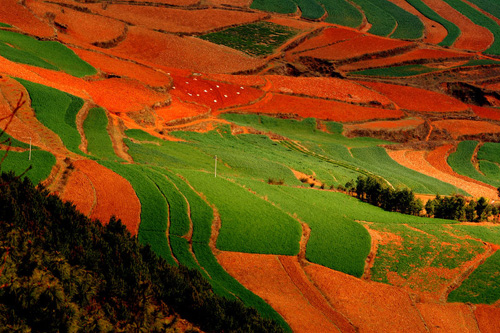 东川摄影师的天堂 云南东川红土地被专家认为是全世界除巴西里约热内卢外最有气势的红土地,而其景象比巴西红土地更为壮美。 以前,从未想过天地间还有如此浓烈的色彩,更不知道它就在我国的东川地区。直到某日偶然翻阅一本台历时,突然被一片鲜艳而斑斓的色彩灼痛了双眼。简直令人难以置信,多么美丽的地方,这是坠落人间的彩虹吗?这是真的吗?它在哪里?从此,我牢牢地记住了一个名字,东川——红土地。 东川红土地位于昆明市东川区西南40多公里的新田乡、一个叫"花石头"(在109公里程碑处)的地方,这里方圆近百里的区域是云南红土高原上最集中、最典型、最具特色的红土地,被专家认为是全世界除巴西里约热内卢外最有气势的红土地,而其景象比巴西红土地更为壮美。第一眼看到那色彩那层次那线条,便忍不住叹息,真美啊……美得太不真实了!放眼望去,山川和原野呈现出一片片暗红、紫红、砖红等不同的红色,方圆数百里大大小小的各个山头、山坡上,油菜花、洋芋花热烈地绽放,金色的麦浪在清凉的山风下一浪掀起一浪,一层绿,一层白,一层红,一层金,鲜艳浓烈的色块一直铺向天边,看似漫不经心,却又形成如画般五彩缤纷的图案。远远看去,仿佛上天涂抹的色块,色彩斑斓炫目、艳丽饱满,有着优美的线条,又勾画得如此浓墨重彩。 旅游贴士: 1.最佳摄影月份是5、9、11月份,那时的色块比较多,主要有红色、黄色、绿色和白色,而且有雾,出作品的机会大大增加。 2.如果不是自驾车,景区内拍摄的景点一般需要租车。可以在落脚的地方向店家询问请求提供帮助,包车200.00元/天。也可以选择步行,但时间上受限制。 3.每一个景点都有自己的特色,特别是不同时间,景色都有变化。下雨后的红土地格外艳丽,早上的红土地色彩比较暗淡,傍晚的光线和色彩要好很多。 4.景区在山上,温度比山下东川低4-8度,早晚较凉,很多地方风比较大,除了7-10月备一件长袖风衣,其他季节最好多带一件抓绒衣。 |