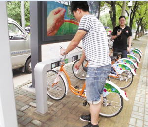 宁海一市民正从租赁点取车。通讯员陈勇摄 6月8日早上,住在宁海跃龙街道的周先生在自家附近的公共自行车租赁点,刷卡租了辆自行车,15分钟后,他在单位旁边的租赁点还了车然后步行上班。“不用花钱,也避免了道路拥堵,以后我就天天骑自行车上班了。”周先生打定了主意。 6月5日,宁海在宁波率先推出公共自行车租赁系统,立即引起当地群众的关注。短短几天时间,每天租赁自行车的市民已近500人次。 市民 省钱又方便,还锻炼身体 前天中午12点多,宁海市民陈先生正在一休公园站点还车。自行车推入停靠装置,车锁关闭,就有语音提示:还车成功,请刷卡确认。陈先生刷卡之后,又有语音提示:刷卡成功,请取卡。 陈先生告诉记者,当天他办卡之后,特地骑着自行车在城区转了几圈,体验其便捷。当天上午,他从宁海第一医院站点借车,到法院站点还车,之后去正学公园游玩。结束后,他又从法院站点取车,骑到一休公园站点,放回。一个上午,他没花一分钱。“太方便了,以后上班也不用开车了,免得早晚高峰那么拥堵。”陈先生兴奋地说。 推出公共自行车租赁,一个最重要的目的就是为减轻城市交通拥堵,缓解行车难停车难问题。众所周知,公共交通系统的可达性是有限的,无法深入到目的地。自行车的灵活机动,正好弥补了这一缺陷,解决了公交系统的“最后一公里”问题。 在陈先生看来,自行车交通占用道路资源少,使用灵活、停放方便,是绿色、低碳、环保的交通方式。他给记者算了笔账:他从家到单位的路程是4公里。如果开车上下班,每天的花费大约在8元钱,这样一个月的花费为240元。租用自行车上下班,不但省去了这笔开支,还能锻炼身体,更重要的是,避开了上下班交通拥堵之苦。 他认为,随着公共自行车的数量和站点的增多,自行车出行将更加便捷,这将逐步改变宁海人的出行方式。 政府 所有景区用自行车串联 站在政府的角度,公共自行车租赁系统的目标,不只是为了方便市民出行。他们还规划了蓝图:宁海县域所有的旅游景点都要用自行车串联起来,为到宁海短途旅游的游客提供方便。 宁海县体育局一负责人介绍说,宁海旅游资源丰富,但目前的景区“小而散”,有的旅游景点至今还没开通公交车。公共自行车的启用,就是为了适应县政府建设“大森林、大景区”、实现生态旅游健身一体化的要求。届时,宁海的各大景点、农家乐等都用自行车串联起来,游客不用花一分钱的车旅费,就能骑着自行车游遍宁海。 目前,宁海的公共自行车系统还仅限在城区使用,已建成30余个站点,投放公共自行车500辆。“十二五”期间,这一系统将覆盖城乡,在全县范围内建成公共自行车租赁点近300个,投放公共自行车15000至20000辆,资金投入在7000万元左右。 公司 持续发展要有政策支持 宁海的休闲公共自行车租赁系统采取市场化运作,县政府与宁海绿畅智能科技交通有限公司合作,由公司投资建设,政府则出台相关优惠政策支撑其管理和运行的相关费用。 在绿畅智能科技交通有限公司,有一套功能完善的信息控制平台。辖区所有的自行车租赁站点都有视频监控,坐在办公室里就能了解每个自行车站点的情况。另外,租车卡的所有信息也能在后台得以反映。刷卡租车后,租车人的姓名、联系方式,在哪个站点,几号桩租的车等所有信息,全都一目了然显示在电脑屏幕上。该公司常务副总王浩介绍说,公共自行车的外形设计同普通自行车外形差别很大,所以,这样的自行车即使被人拿走了,也是骑不出去的。 王副总表示,作为一项由政府创意实施的便民利民公共服务产品,肯定不能完全按照市场化来运作,政府必须在其中发挥作用。但是,可以预见,如果一味靠政府拨款,政府必须不断投入财政资金来支付车辆维修、折旧、人员工资等各种开支,这样必将阻碍这个租赁系统的长期发展。 那么,维持系统持续发展的资金究竟从哪里来呢?除了政府的贴息措施外,宁海还想出了一个颇具商业智慧的办法:开发公共自行车服务点的资源。通过各服务点的服务亭和广告牌的开发出租以及自行车车身广告利用,都能获得一定的收益。 前景 站点建设尚有瓶颈 自6月5日自行车租赁系统正式运作以来,绿畅公司每天都会接到好几位宁海市民的电话,询问他们小区附近为什么没有租赁点。 这个问题也正是目前令绿畅公司头痛的事情。自行车站点建设的选址往往较难落实,这在一定程度上阻碍了这个系统的建设。 不久前,绿畅公司在城区某学校旁边想建个站点,方便学生出行。本以为想法是好的,已经在挖地打桩了,可遭到学校的反对,担心站点建成后影响校园安全。就这样,该处的站点建设被搁浅,还浪费了一笔施工费。 宁海城区街道较窄,街面上可利用空间也不多,这些都给站点建设带来了障碍。 宁波市区啥时也有租赁点? 宁海城区率先推出公共自行车租赁,引起了许多宁波城区市民的关注。去年,海曙率先一步做出了绿色出行的海曙样本,在商业楼宇内投放了一批公共自行车。随后,江北也推出了绿色公务自行车下基层的举措。不过,因为这些点的自行车数量有限等原因,自行车租赁的便捷还远远没有发挥出来。 今年两会期间,不少政协委员就倡导健康出行,绿色出行,文明出行,减少城市碳排放,建议参考北京、上海、杭州等城市的经验,摸索适合宁波的自行车租赁服务形式。委员们认为,要把自行车出行纳入