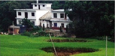 9月3日,江西省萍乡市芦溪县银河镇紫溪村发生地质塌陷,从高速公路远远望去,能看到稻田内的两个坑洞。高速公路也出现裂缝。目前,沪昆高速公路萍乡段仍封闭通行。图/记者辜鹏博 昨日凌晨4时,沪昆高速江西萍乡芦溪县境内K940+750M处地段边坡突然出现塌陷,形成一个直径10米、深10米的大洞。此前,沪昆高速K940+200M路段2日有路面出现沉陷现象。据江西省高速公路投资集团宜春管理中心消息,整幅下沉长度100余米,沉陷最深处达60至70厘米。目前,沪昆高速宜春至萍乡段双向封闭。 而事故所在地芦溪县银河镇紫溪村早在9月1日凌晨2点多,就发生了田地沉陷和房屋塌陷,且有扩张下沉趋势。本报记者谭君江西芦溪报道 近200村民凌晨逃生,部分房屋垮塌 1日凌晨2点多,住在沪昆高速边的紫溪村村民陈秀英被一阵像放鞭炮的声音惊醒。她摇醒身边的丈夫李兆林,李以为家里来贼了,抄起棍子出门,却看到门前王家人的一丘田正在往下沉,伴随着“放大炮竹和小炮竹”的响声。陈跑出屋外,四处敲门唤醒沉睡的邻居,村民们逃出房子,有的只穿着短裤。惊慌的陈秀英叫唤完邻居回到屋里,却发现房子的墙壁已经裂开一寸多。而另一村民张钧家的一间房,已完全垮塌。 近200名村民在夜晚仓皇逃生,没有伤亡。但王家人的1.5亩水稻田出现两个大窟窿,断层处露出黄泥。据村民介绍,不远处还有一个沉陷窟窿。 昨日下午5点多,记者靠近沉陷现场查看了布满裂缝的房子,沉陷区稻田的泥土正在往下滑落,地表也缓缓张开一条条裂缝。沉陷区34户村民全部撤离在警戒线之外。陈秀英向记者反复念叨,“房子要建到哪个地方去?要赶快啊,马上要过年了。你说我们住到哪里?” 当地村支书警告受访村民“说了没得好处” 对于沉陷的原因,村民们认为跟村子里的一条“阴河”(地下河)有关。三名年轻村民介绍,2002年,修沪昆高速时,在村子南边发现了一条阴河,高速公路就移到此次农田沉陷区域的北端修建。2009年,村里在阴河附近打了一口深井,统一以每吨2元的价格向村民供应自来水,“恐怕是抽水机把阴河的水抽干了,农田就陷下去了。”一位叫李金友的村民介绍。此前,村民都是自己用摇泵摇水喝,或者喝山上泉水。 记者在村子西边一个山包上看到了这个写着“国家农村饮水项目紫溪供水”的抽水井。该井位于一口池塘旁。记者采访紫溪村村支部书记吴淑华,她说“这是国家项目,我没时间跟你讲。”转过身,她又对接受记者采访的村民说,“你们说了对你们没得好处的。” 另外,还有村民认为,沉陷可能跟村子里的复胜煤矿有关。紫溪村有不少村民在该煤矿打工,一位挖过煤的村民介绍,矿井已经挖到接近阴河的地方。而在离沉陷区域1公里左右,村民辛光兰的住房多处开裂,据江西省煤矿司法鉴定中心的鉴定报告,辛的房屋“位于(煤矿)开采影响范围之内。” 多名村民介绍,沉陷区的水,跑到复胜煤矿的深井里去了。记者欲赶往复胜煤矿,一位自称是芦溪县委宣传部的工作人员阻拦了记者的采访。一位李姓村民说,下午4点多他去复胜煤矿看了,两个380多米深的深井里,“蓄了很多水,只差100多米就满了。” |