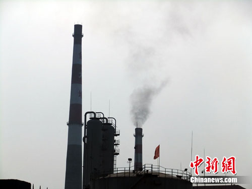 这就是“金大地”排出的烟。村民们说,这种烟还是轻的,有时金大地排出黑烟遮天避日。吴扬摄