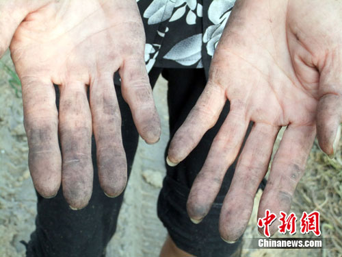 由于河南金大地化工有限责任公司的烟尘污染,小马庄村即将收获的玉米,一摸两手黑。吴扬摄 这位女性村民告诉记者,这些随意堆放的生产废料已经污染了当地地下水源。她说,过去村民们吃的都是地下水,十米八米深的水井抽上来的水水质都很好,喝起来甘甜,现在她们家新打的18米深井抽上来的水一煮都冒白沫,喝起来有股怪味。“自从金大地一开始生产,我们村的水质就开始一天天变坏。现在村里的人都不敢吃地下水啦!” 在上述三个村庄采访时,记者可以明显感到村民们对河南金大地化工有限责任公司的怨恨与无奈。 那么,对小马村、乔庄村、大汗李村村民所面临的污染困境舞阳县环保局又是如何看的、河南金大地化工有限责任公司的环保工作做的是否到位呢?记者带着这些疑问几经周折终于找到舞阳县环保局局长张俊明。让记者感到诧异的是,无论记者问什么问题,这位环保局的一把手除了一句“你问环境监察大队”外然后就紧闭双唇一言不发。无奈之中,记者只好黯然离去。 据了解,舞阳县环境监察大队是舞阳县环保局的下级机构。实际情况是,记者在舞阳县等了一天半也没等到舞阳县环境监察大队的赵队长。该局副局长吴国语对记者说,赵队长负责“金大地”的事,除了赵队长别人都不清楚,赵队长不领着他(吴国语)也进不去河南金大地化工有限责任公司的大门。 |