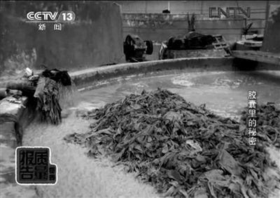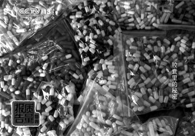 用工业明胶为原料制成的药用胶囊。央视截屏 东方网4月16日消息:记者在河北、江西、浙江等地多家明胶厂和药用胶囊厂调查发现,河北学洋明胶蛋白厂和江西弋阳龟峰明胶公司,用铬超标的皮革废料做原料生产工业明胶,通过隐秘的销售链条,把工业明胶卖到浙江新昌地区。这种铬含量严重超标的工业明胶由于价格便宜,被当地部分胶囊厂买去做原料,生产加工药用胶囊。 昨天下午3时,公安部门赶到河北一家生产企业调查时,该厂厂房车间突然莫名起火。而新昌县则紧急查封相关问题企业,公安机关已对4名企业负责人实行控制。 □胶囊之乡 三无明胶加工药用胶囊 浙江省新昌县儒岙镇是全国有名的胶囊之乡,有几十家药用胶囊生产企业,年产胶囊1000亿粒左右,约占全国药用胶囊产量的1/3。 药用胶囊是一种药品辅料,主要供给药厂用于生产各种胶囊类药品。据调查,这里的胶囊出厂价差别很大,同型号的胶囊按1万粒为单位,价格高的卖六七十元,甚至上百元,低的只要四五十元。 新昌县卓康胶囊有限公司销售经理王浩明透露,他们厂生产的药用胶囊主要供应东北、山西等地一些药厂,所用原料主要是明胶,胶囊价格悬殊跟明胶原料有很大关系。“胶囊所用材料不一样,一个是2万多(一吨),一个是3万多”。 在这家厂的原料库房里,只有每吨售价3万多的明胶,并没有2万多一吨的明胶。 在该公司另一个原料库房里,记者见到了2万多一吨的明胶。这种明胶用白色编织袋包装,上面没有厂名厂址等任何产品标识。这种便宜明胶和3万多一吨的明胶外观相似,都是呈淡黄色颗粒状,肉眼几乎看不出差别。 多家企业偷用问题明胶 在调查中,记者发现当地其他一些厂家也在暗中使用这种白袋子明胶生产药用胶囊。 新昌县华星胶丸厂是当地一家规模较大的胶囊生产企业,有20多条生产线,每天可生产几千万粒药用胶囊,产品主要供应吉林、青海、四川等省的多家药厂用来生产胶囊类药品。 生华星胶丸厂生产线负责人朱明光说,这种价格相对便宜的明胶,用来加工药用胶囊能够大大降低成本,在当地非常畅销。 记者在新昌县走访的多家胶囊厂,都在暗中使用这种来路不明的白袋子明胶加工药用胶囊。一提到这种明胶的来源,厂家都非常警惕,不愿多讲。而在新昌县做药用胶囊的厂家圈内,大量的白袋子明胶通过地下链条暗中销售和使用已是公开的秘密。 □明胶来源 河北正规厂家年产上千吨 历时半年,记者十多次前往新昌调查,终于摸清这种白袋子明胶的来源。一名曾在新昌华星胶丸厂承包胶囊生产线的负责人透露,这种神秘的白袋子明胶大多来自河北、江西等地。 根据线索,记者来到河北省衡水市追查白袋子明胶真相。河北学洋明胶蛋白厂位于衡水市阜城县,具备年产上千吨明胶的生产规模,是一家获得食品添加剂产品生产许可证的企业。 在该厂库房里,存放了大量白袋子包装的明胶。据该厂经理宋训杰介绍,他们厂去年生产了1000多吨这种白袋子明胶,大部分卖给了浙江新昌地区的药用胶囊厂,“我这百分之七八十的胶都跑那边去了”。 臭皮子处理后成药用胶囊原料 宋训杰说,白袋子包装的明胶之所以便宜,是因为使用了一种价格低廉的“蓝皮”做原料,用这种“蓝皮”加工的明胶业内俗称“蓝皮胶”,浙江新昌儒岙镇一些厂加工药用胶囊所用的白袋子明胶就是“蓝皮胶”。 在学洋明胶蛋白厂,记者见到了蓝皮胶的真面目。在厂里的空地上,有一堆像小山一样大的垃圾回收场,看似厂里的生产垃圾和废料,近看才知是各种各样的碎皮子,散发着刺鼻的臭味。 这种碎皮子正是“蓝矾皮”,业内俗称“蓝皮”,就是从皮革厂鞣制后的皮革上剪裁下来的下脚料,每吨只卖几百元。鞣制后的皮革通常被用来加工皮鞋、皮衣、皮带等,这些皮革下脚料则被学洋明胶蛋白厂收购来加工成“蓝皮胶”卖给一些胶囊厂,做成药用胶囊供应药厂生产胶囊类药品。 《中国药典》规定,生产药用胶囊所用原料明胶至少应达到食用明胶标准。食用明胶的原料应该是动物的皮、骨等,严禁使用制革厂鞣制后的任何工业废料。 这种明令禁止的工业皮革废料是如何变成药用胶囊原料的呢?在河北学洋明胶蛋白厂,记者目睹了整个加工过程。这些又脏又臭的碎皮子首先要用生石灰浸渍膨胀,然后用工业强酸强碱中和脱色,再经过多次清洗等工序处理后,变得又白又嫩,看上去跟新鲜动物皮原料没有两样。 在熬胶车间,清洗后的皮子被放入熬胶锅里熬成胶液,正在熬制的皮子里还夹杂着异物。宋训杰说,“有没有脏东西没关系”。 熬出来的透明胶液,再经过浓缩、凝胶、干燥、粉碎等工序,就变成了淡黄色的“蓝皮胶”。宋训杰承认,这种明胶就是国家明令禁止用作食品药品原料的工业明胶。 原来,在浙江新昌儒岙镇被用来加工药用胶囊的白袋子明胶,就是用这种又脏又臭的“蓝矾皮”生产的工业明胶。 在包装车间,这种工业明胶被分别装入两种包装袋,一种包装上印着“工业明胶”字样,另一种包装上则是一片空白,没有任何产品标识。标明工业明胶的卖给各种工厂作为工业黏合剂,无任何产品标识的白袋子胶,则卖到浙江等地的胶囊厂加工药用胶囊。 江西老牌明胶厂声称不负责 据调查,江西省弋阳县也有厂家在用工业废料“蓝矾皮”加工这种白袋子工业明胶。 龟峰明胶有限公司位于江西省弋阳县,是一家有着二