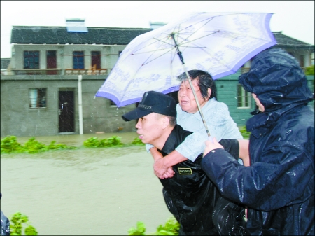 ![]() 前天上午,奉化公安突击队队员在童赵村转移受困群众。 通讯员李灿记者陆麒雯摄 昨天,明媚的阳光再次光临甬城,许多市民早上起来打开窗户后会心一笑:“海葵”终于彻底告别宁波了。 8日3时20分,在我市象山县鹤浦镇沿海登陆的强台风“海葵”,是近12年来正面袭击我市的一次台风。 昨天傍晚,记者从权威部门了解到,截至昨日16时,“海葵”造成我市11个县(市)区136个乡镇不同程度受灾,受灾人口143.2万人,2642间房屋倒塌,初步统计造成直接经济损失101.9467亿元。但是,另一个结果比以上这些数据都重要:零伤亡。到目前为止,全市没有接到因灾人员伤亡的报告。此外,水库、海塘等重要水利工程总体安全,全市社会秩序良好。 面对60年一遇的台风,宁波是怎么做到的? 区长微博劝大家不要上班 “当你早上出行觉得困难时,请一定不要出门。什么考勤打卡,什么扣奖金,让它一边去吧。生命才是最可贵的,和家人一起待在家里,不用让别人来救援你,就是你这两天对宁波最大的贡献。” 昨天早上,狂风肆虐,暴雨如注,海曙区区长吴胜武微博上的话,让许多纠结着要不要去上班的人会心一笑。这条微博被转发8000余次,评论2000余条。 轻松的语气,但至少让多数市民明白了政府的态度:老百姓的生命是第一位的。 生命第一,还体现在灾前的转移之工作中。昨天上午,暴雨下了一天一夜后,北仑春晓接到一条信息:裘村两水库溢水,洪水开始侵蚀村庄。这是一个地势较高的村庄,之前并不在转移范围之内。 在妇女主任的带队下,城管队员冒着大雨挨家挨户地敲门,将村民一个个地转移。81岁的王奶奶留恋旧屋,舍不得离开。她说,活了这么多年,什么样的风雨没见过,一定不会有事的。城管队员几经劝说,甚至撒了个善意的谎,说是其在外地的儿子吩咐的,一定要转移的,这才说动了老太太,城管队员把她背了出去。 【话外音】 台风当前,我市以“不死人、少伤人”为首要任务,突出做好人员避险转移。通过采取停工、停业、停市、停运、停学和关闭景区等措施,尽量减少人员户外活动,千方百计避免人员伤亡。截至8日16时,全市共转移各类危险区人员319188人。其中船上人员转移27873人,海塘外和非标准海塘内转移17323人,可能出险标准海塘内转移人员7642人。 坚守4天3夜的守闸人 北仑三山大闸,承担着春晓镇三分之二的排水量及洋沙山以西大半个滨海新城一半的水量排放工作,每当台风带来的暴风大雨来临时,三山大闸无疑扮演着最重要的角色。 8日6日早上,当得知今年第11号台风“海葵”有可能在浙江登陆时,海塘管理所负责人丁汉成第一时间把三山大闸的所有员工召集在一起,召开了紧急会议。当天下午,大家开始行动,检修设备、准备油料,原本就在运行的大闸开始加大排水量,尽最大可能把河道、春晓湖、溪坑的水排放出去,所有工作井然有序地开展着。 8月7日,暴雨一直在下,风肆虐地刮着,灰暗的天空,豆大的雨点一刻都没有停,春晓镇的降水量已达到200毫米,排水工作难度逐渐增大。 下午4点多,高速运行的水闸突然停止了,原来是变压器坏了。工作人员立即启动位于大闸附近的自备发电机,停止下来的水闸又开始工作。 晚上8点开始,受涨起来的潮水和暴雨的影响,发电机房渐渐被涨起来的水淹了。 8月8日凌晨,突然一声巨响,自备发电机也英勇“牺牲”了。大家立即紧急商讨对策,在场的十几名人员,两两分组,一个拉着电机,一个把电机与闸门连接上,通过柴油电机的转动来使闸门运转,这一夜大家无眠。 8月9日,大雨停了,风也渐渐小了,工作人员仍坚守岗位。李信裕师傅告诉我们,他已经4天没有回过家,也不知道家里的受灾情况。 【话外音】 我市以确保水利工程安全为目标,突出加强水库河网科学调度。针对我市水库河网因前期降水多、水位高的实际,根据气象预报和蓄水情况,充分利用台风影响前的有限时间,抓紧对超汛限水位和水位较高的各类水库河网实施预泄预排。加强海塘巡查管理,及时关闭旱闸,封堵道口、决口。沿海地区在建的围垦工程和其他临港工程等涉水、涉海工程按防台预案做好防御准备。 抢修7小时顾不上吃一口饭 前天,宁波公路局路桥处的钱国忠驾驶着铲车,正忙着甬台温高速奉化段塌方路段的边坡施工。 甬台温高速奉化段在此次“海葵”袭击中受损严重,过奉化出口7公里处,山体塌方造成交通中断。这是宁波唯一一条在此次台风袭击中中断交通的高速公路。 宁波公路局路桥处在8日11点20分接到抢通命令。正在抗台值班的钱国忠和另外一台挖掘机马上出发,奔赴现场。 其实,就在钱国忠出发前2小时,他同样接到了家人的“命令”———位于鄞州姜山的家里已经进水,水快漫到膝盖,快点回来。 塌方有1500立方米左右,险情比想象的更严重,时不时有小石块从头顶掉落。甬台温高速,往宁波方向全部被堵死,往台州方向仅剩一个车道。放眼望去,车辆足足排了1公里,高速路上满是泥浆。 14点30分,路桥处所有抢通力量到达。4台铲车、4台挖掘机、6台平板车及50多人组成了坚强的抢通力量。 从12点40分开始投入抢修,一直忙碌到19点30分左右,甬台温高速塌方路段抢通。7个小时,钱国忠全身湿漉漉的。因为没吃中饭,到下午时段,肚子饿得咕咕叫,但同事买来的快餐,谁都顾不上吃一口。 【话外音】 目前,我市正在抓紧制定修复重建方案并及时组织开展损毁基础设施抢修