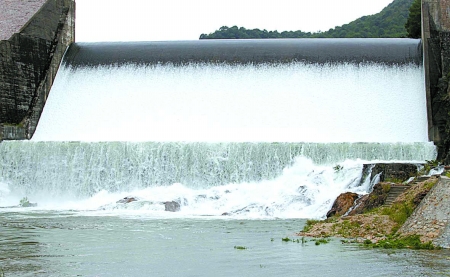 【宁波日报】迎战“海葵”严阵以待 宁海黄坛水库开闸放水