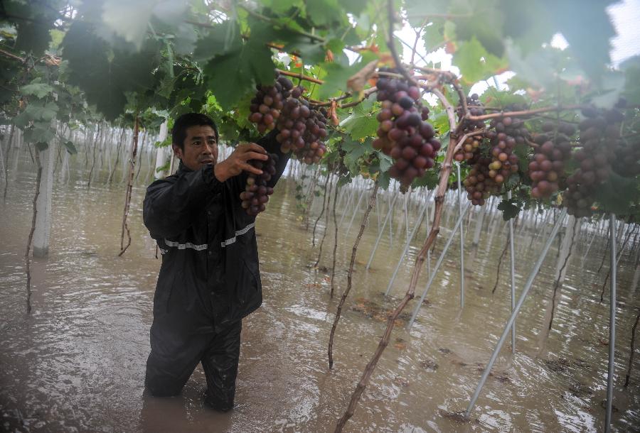 8月8日,浙江宁海县长街镇一处被淹农田大棚内,种植的甜瓜漂浮在水面上。 今年第11号强台风"海葵"8月8日凌晨3时20分在浙江省三门湾北侧的象山县鹤浦镇登陆。同位于三门湾北侧的宁海县长街镇,因临近此次台风登陆点成为重灾区。作为宁海县"粮仓"的长街镇,8万多亩农田被淹,大量养殖塘漫塘,据当地政府部门初步统计,直接经济损失已近6亿元。 ![]() 8月8日,浙江宁海县长街镇一养殖塘内,当地群众冒雨喂养鱼虾。 ![]() 8月8日,浙江宁海县长街镇葡萄种植大户陈人初在被淹的大棚里摘取成熟葡萄。他的90多亩葡萄大棚全部进水,其中约20亩已倒塌;如不能及时排水,陈人初将遭受上百万元的损失。 ![]() 8月8日,浙江宁海县胡陈港水库,人们在被大水带来的网箱内捕鱼。 ![]() 8月8日,浙江宁海县长街镇养殖户娄贤亮站在进水的鸭舍里欲哭无泪。他说:"鸭舍进水后,我养的3000多只鸭子会掉毛不下蛋,这次损失不下10万元。" |