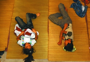 ![]() 昨晚,白岐村救灾点内两个熟睡的小孩。 记者许天长摄 昨晚7点10分,当最后一辆满载妇孺老幼的大巴车从村里开出时,整个村落一片寂静,只剩几点灯火——为了应对即将到来的“海葵”强台风,宁海县一市镇白岐村所在的地势最低的一个自然村塘厂,进行了全民迁移。当天晚上,村民们在一座临时“大宅院”内度过了难忘的一晚。 外面是狂风暴雨,里面则是温情一片。当晚8点,记者来到这座被村民们称之为“大宅院”的白岐村村委会大礼堂。在约摸60来平方米的礼堂戏台上,铺满了一张张席子,数十名村民或坐或卧或站,相互攀谈言语着,孩子们则嘻嘻哈哈地在一边嬉戏着。戏台上,还放着一堆村里提供的饼干、方便面和矿泉水。 “这次我们一共转移了51户人家,共141人。其中85人投亲靠友分流到其他几个村去了,剩下56人就被集中安排到这个‘大宅院’里了。”白岐村妇女主任周贵芝告诉记者:“让我们欣慰的是,大伙儿被安排到这里后,相互照顾安慰,感觉像是来到了一个大家庭。” 养鸭户叶惠珍和她的丈夫,正各自拿着一本厚厚的书静静地看着。说起这次台风,叶惠珍忍不住提起1997年那次大台风:“当时,整个塘厂村几乎成了一片汪洋,3米多高的洪水淹没了大半幢房子,村民们家里的鸡啊鸭啊猪啊,都被大水冲没了,整个晚上,村民们都无处落脚。现在村里这样安排,我心里踏实多了,就是放心不下鸭舍里那100多只鸭子。”“我有10亩虾塘就在村口,从心里想,我还真不想离开家里,这样随时可以去虾塘看看,一旦有情况就可以得到处理。”65岁的杨能余说,从昨天下午开始,镇里、村里的干部们就来动员我们撤离,一个个苦口婆心,我们老两口被说动了。“如果真台风来了,虾塘还可以重建,生命才是最重要的,该转移还是转移吧!”65岁的叶娟女住在塘厂的村口,地势在村里相对还算高的,她对10多年前塘厂遭受台风袭击的情景依然记忆犹新,她说,当年台风来时,当海水漫进家里时才发现,已经来不及转移了,村庄几乎全被淹了,最高的水位漫到二楼。“这次听说台风很厉害,我一听到转移,就马上准备一些生活用品,跳上转移的大巴车就来到了这里。” “大宅院”外,狂风依旧,暴雨依旧。“大宅院”内,则渐渐安静下来。晚上9时许,看书的继续看书,歇息的开始歇息。一些年轻的村民则三五成群,掏出扑克,各自找好搭档,开始玩起“斗地主”、“打红星”来。 宁波晚报记者朱志莹王景波通讯员周武军 |