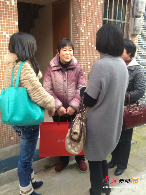 宁海新闻网讯 为了让今年的“三八”妇女节过得更有意义,2月28日下午,宣传综合妇委会组织七家成员单位的妇女代表一起来到东海社区,为四名贫弱妇女和三名留守儿童送去了温暖如春的关怀。图为妇女代表慰问社区困难户。(通讯员小尤摄)
