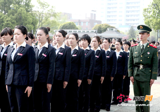 为增强企业员工的纪律和国防观念,进一步提高身体素质、提升服务形象,4月8日至11日,太平洋百货集团宁海人民店、国购店的2000多名员工在潘天寿广场进行了为期4天的军事化训练。(李江林沈跃进摄)