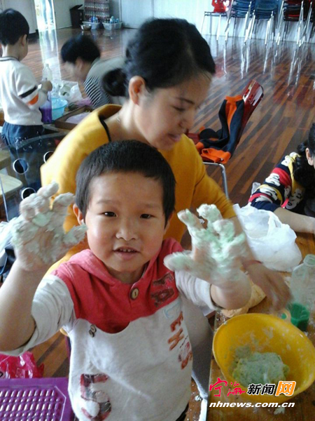 宁海新闻网讯近日,跃龙中心幼儿园举行了亲子面粉DIY活动,家长和孩子们一起用面粉、颜料、水来制作脸谱,用各种废旧材料来做五官,亲子合作,创意无限。(通讯员黄玉雯摄)