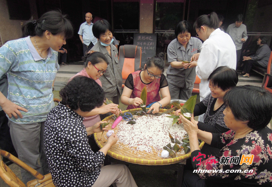 日前,跃龙街道园丁社区组织在职党员与居民志愿者走进闻裕顺敬老院,和老人们一起包粽子过端午,并为老人修剪指甲、梳头。(姚亮胡梦月摄)