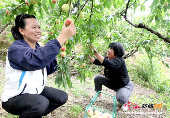 宁海新闻网讯 昨日上午,胡陈乡中堡溪村桃农陈燕浓母女俩正在桃园里采摘早熟水蜜桃。据了解,今年胡陈乡水蜜桃种植面积达13000余亩,比去年增加了近5000亩。(李江林胡燕红摄)