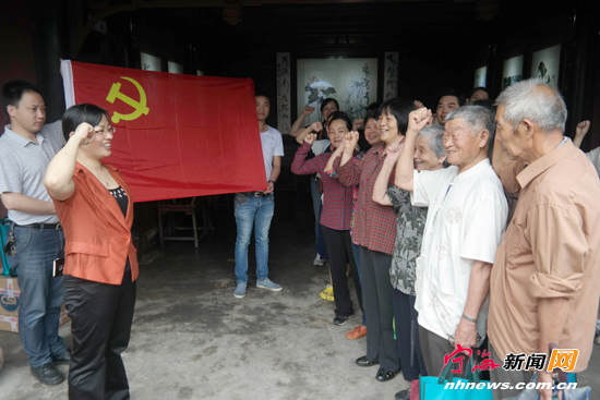 宁海新闻网讯近日,跃龙街道怡惠社区党支部开展“迎七一,重温入党誓词”主题活动。鲜红的党旗下,党员们再一次重温入党誓词,并表示将在实践中不断锤炼党性,做好本职工作,以自己的实际行动向党的生日献礼。 (姚亮葛剑锋摄)