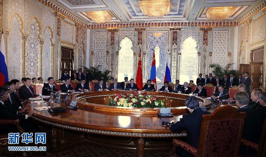 新华网杜尚别9月11日电(记者陈贽李斌)国家主席习近平11日在杜尚别同俄罗斯总统普京、蒙古国总统额勒贝格道尔吉举行中俄蒙元首会晤。 习近平强调,中俄蒙三国是好邻居、好伙伴。在当前复杂多变的国际和地区形势下,三国元首首次举行会晤,就彼此关切的合作问题进行沟通,可以增进三方互信,促进互利共赢合作,实现优势互补,共同发展,推动东北亚区域合作进程,很有必要,也具有重要意义。良好的开始是成功的一半。相信这次会晤将为今后三方更加紧密的关系发展打下良好基础。 习近平指出,中俄蒙三国发展战略高度契合。中方提出共建丝绸之路经济带倡议,获得俄方和蒙方积极响应。我们可以把丝绸之路经济带同俄罗斯跨欧亚大铁路、蒙古国草原之路倡议进行对接,打造中蒙俄经济走廊,加强铁路、公路等互联互通建设,推进通关和运输便利化,促进过境运输合作,研究三方跨境输电网建设,开展旅游、智库、媒体、环保、减灾救灾等领域务实合作。三方可以深化在上海合作组织框架内合作,共同维护地区安全,实现共同发展。三方还要加强国际合作,共同维护国际关系基本准则,共同倡导互信、互利、平等、协作的新安全观,共同推动以和平方式,通过对话谈判,政治解决国际争端和热点问题。中方支持蒙方积极参与地区事务。明年是世界反法西斯战争暨中国人民抗日战争胜利70周年,也是联合国成立70周年。中俄将举办一系列庆祝和纪念活动,我们欢迎蒙方参加有关活动。 普京表示,俄中蒙三国地理相邻,要加强交往、对话、协调。中方共建丝绸之路经济带的倡议为三国合作提供了新的重要机遇。三方要把各自发展计划结合起来,在能矿、交通基础设施建设等领域建立长期稳定合作关系。三国都主张世界多极化,应该共同努力,维护地区安全稳定。 额勒贝格道尔吉表示,蒙古国从战略高度重视同中国和俄罗斯发展更加紧密的睦邻友好合作关系。前不久,习近平主席和普京总统分别访问蒙古国,推动了蒙中、蒙俄关系发展。蒙方希望加强同中、俄的合作,拉动交通基础设施互联互通和跨境运输。蒙方希望加强同亚太经合组织等机制的合作,积极参与地区事务。 三国元首认为,这次会晤非常有益,将分别责成各自有关部门落实三国元首达成的共识,研究有关合作建议,及时向三国元首汇报。建立三国副外长级磋商机制,统筹推进三国合作。 三国元首同意,今后将根据需要继续举行三国元首会晤。 王沪宁、栗战书、杨洁篪参加会晤。 ![]() 9月11日,国家主席习近平在塔吉克斯坦首都杜尚别同俄罗斯总统普京、蒙古国总统额勒贝格道尔吉举行中俄蒙元首会晤。新华社记者鞠鹏摄 |