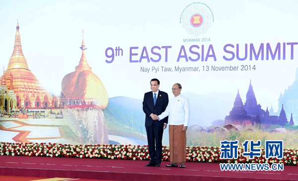 李克强出席第九届东亚峰会时强调 政治安全和经济发展“两个轮子一起转” 努力建设和平与繁荣的东亚地区 新华网内比都11月13日电(记者陈二厚桂涛)国务院总理李克强当地时间13日上午在缅甸内比都出席第九届东亚峰会。东盟十国领导人以及韩国总统朴槿惠、日本首相安倍晋三、美国总统奥巴马、俄罗斯总理梅德韦杰夫、印度总理莫迪、澳大利亚总理阿博特、新西兰总理约翰·基出席。缅甸总统吴登盛主持会议。 ![]() 11月13日,中国国务院总理李克强在内比都出席第九届东亚峰会并发言。这是峰会开始前,东盟轮值主席国缅甸联邦共和国总统吴登盛迎接李克强总理。新华社记者李涛摄 李克强在讲话中说,东亚在过去几十年能够快速发展,根本原因在于有一个和平稳定的地区环境,这是东亚各国人民共同努力的结果。各方应把握好政治安全和经济发展“两个轮子一起转”的大方向,促进地区和平安定,积极应对全球性挑战,深化经济社会等领域合作,建设和平与繁荣的东亚地区。 李克强指出,中国始终是东亚地区的和平稳定力量,坚定不移走和平发展道路,愿与地区国家一道,建设亚洲利益共同体、责任共同体和命运共同体。东亚的长治久安需要有坚实的制度安排,中国愿与东盟国家早日签署“睦邻友好合作条约”,并愿与更多地区国家探讨达成睦邻友好法律文件,探讨符合地区实际的安全理念和架构。中国愿同各国携手应对恐怖主义、传染性疾病、气候变化、灾害管理等非传统安全问题。 李克强阐述了中国在南海问题上的原则立场。他表示,南海形势总体是稳定的,航行自由和安全也是有保障的。中国与东盟国家就全面有效落实《南海各方行为宣言》、推进海上务实合作,进行了密切有效的对话与沟通。我们明确了处理南海问题的“双轨思路”,同意积极开展磋商,争取在协商一致的基础上早日达成“南海行为准则”,并已取得早期收获。中方倡议有关国家积极探讨共同开发,有效管控分歧。 李克强指出,东亚发展合作的关键是促进经济一体化,为此应推进以下重点领域合作:推动东亚贸易投资便利化。尽早完成相关自贸协定谈判,支持启动亚太自贸区进程。加快东亚互联互通。扩大东亚金融合作。完善清迈倡议多边化机制安排,扩大本币互换和跨境贸易本币结算规模。加强东亚减贫合作。中方愿继续向东盟欠发达国家提供无偿援助,支持“东亚减贫合作倡议”,开展乡村减贫推进计划。推进东亚海上合作,以明年中国-东盟海洋合作年为契机,加强海上执法机构间对话合作,实施好中国-东盟海上合作基金有关项目。密切东亚人文交流。挖掘海上丝绸之路的历史人文内涵。鼓励中国-东盟思想库网络、东亚思想库网络等地区二轨合作机制,为亚洲发展贡献智慧。 与会各国领导人表示,面对深刻复杂变化的国际、地区形势,东亚国家应进一步加强对话,凝聚共识,携手应对传统和非传统安全挑战,深化务实合作,推进地区经济一体化,共同促进地区与世界的和平稳定、发展与繁荣。