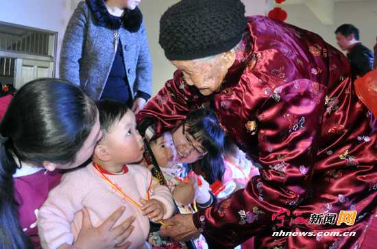 日前,西店一位百岁老人正为村里的小孩系上“长寿绳”。春节临近,我县城乡节日氛围渐浓,群众开始忙忙碌碌购年货、捣麻糍、打糖划糕…… (李江林徐红燕摄)