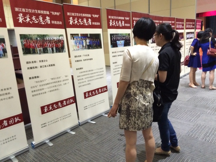 现在我们去医院,除了身穿白大褂的医生护士们,总能看到一群面带微笑身穿红马甲的志愿者们。 当你因不清楚就诊流程而焦头烂额,或是由于看不懂体检报告需要专业解读,甚至是在需要心理和情绪疏导时,这群志愿者们总能及时出现给予帮助。 8月25日,“致敬!最美志愿者”浙江省卫生计生系统首届最美志愿者揭晓典礼现场,自今年4月以来经过各单位推选、网络点赞等环节最终产生的最美志愿者团队、最美志愿者、优秀志愿者团队和优秀志愿者在此揭晓并接受表彰。 他们中有原本业余却经过医院专业培训的爱心人士,也有来自专业医护团队的医生护士们。