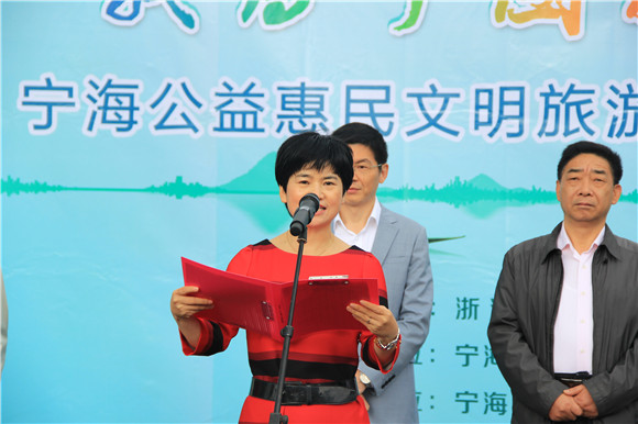 宁海县政府及相关部门领导参加“我为中国加分”宁海公益惠民文明旅游启动仪式 ![]() 宁海县旅游委员会主任林仙菊致欢迎辞 ![]() 宁海县委常委、副县长金勇宣布“我为中国加分”宁海公益惠民文明旅游启动