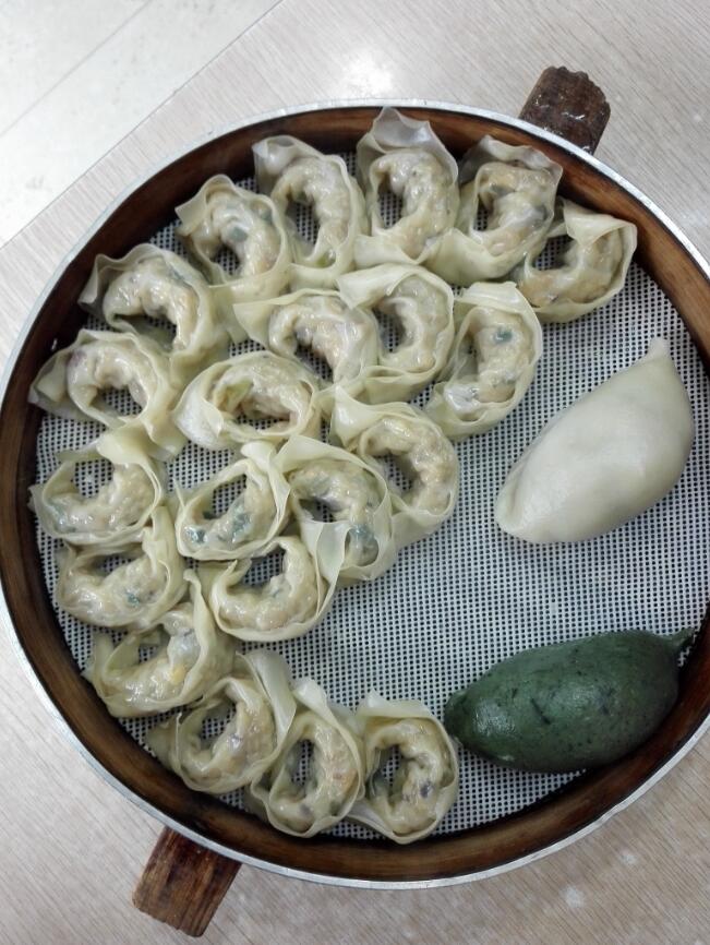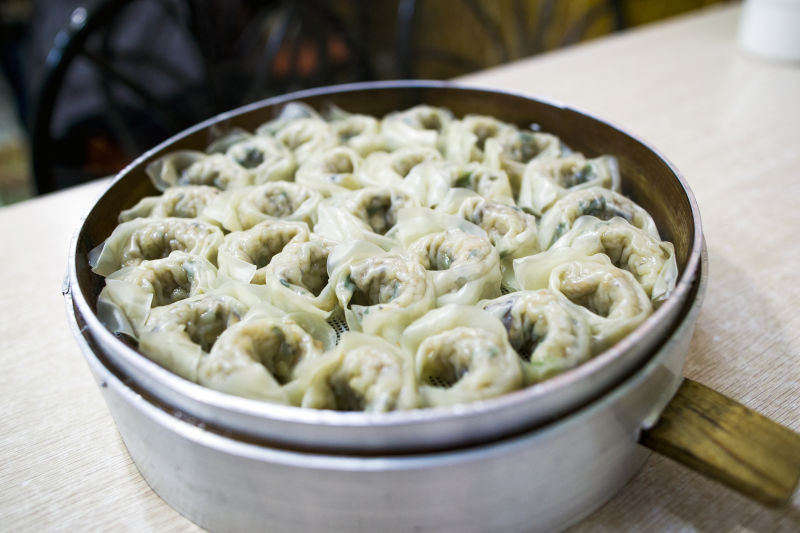名为“十四娘手工水饺”,主打的却不止是水饺,还有汤包、米团。老板也不是“娘子”,而是一位如米团般白白净净的年青人。店堂虽小,但敞亮、洁净。门口进来最里边一张桌上,放着半脸盆的料理,旁边的米筛上,是裹好的团。一名阿姨坐在桌前,低着头忙个不停,一分钟包好一个,一分钟包好一个。一开口,浓浓的长街腔。