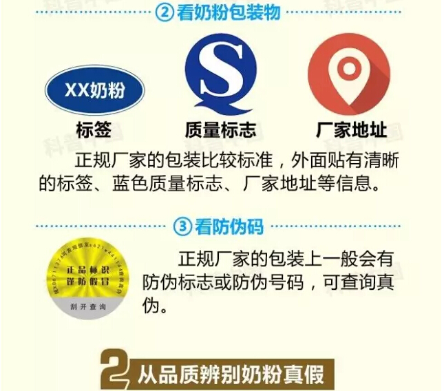 奶粉事件似乎从来都没有消停过,事关宝贝的健康安全,宝妈们也真是操碎了心。我们该如何辨别奶粉的真假呢?通过一张图来了解下。 ![]() ![]() ![]() ![]() ![]() ![]() ![]() ![]() ![]() 市场上的奶粉种类琳琅满目,质量也参差不齐,所谓的代购“洋奶粉”的来源有时候也不能说清楚。最终还要靠我们自己擦亮眼睛,为宝宝购买奶粉时,谨慎!谨慎!!再谨慎!!!