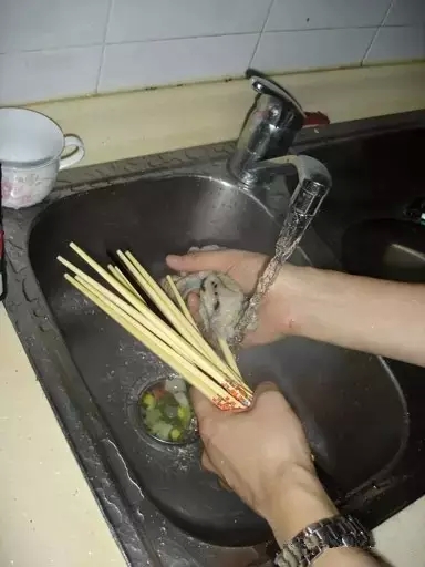 2.洗筷子时攥在一起猛搓是错误的,这样会产生细小凹槽,为微生物提供了生长空间,正确的洗法是在流动水下慢慢用抹布清洗。
