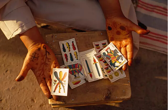 1971 年的一位摩洛哥预言者在展示她的命运卡片