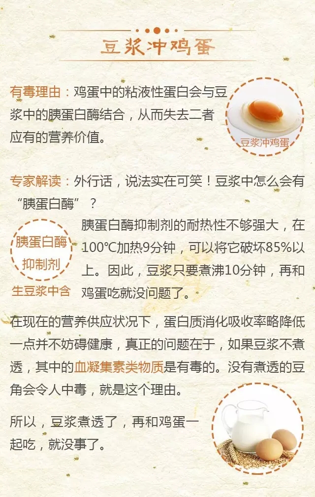 2016-06-11宁海新闻网 导读: 豆浆冲鸡蛋、香蕉拌酸奶、黄豆炖猪蹄这些留传多年的经典菜肴,近日来却被打上“有毒家常菜”的标签。在搜索引擎上键入“错误食物搭配”这几个字,万余篇相关文章瞬间映入眼帘。看起来如此家常的食物搭配方法,真有问题吗?一起来看看营养专家的解读吧!