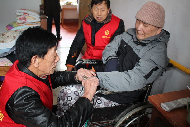 东海社区第一支部党员袁哲岳为瘫痪人员上门开展志愿服务活动。