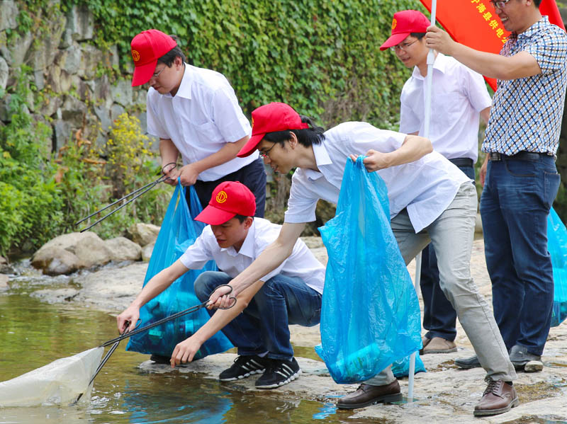 宁海百家工会党组织到各个水源保护点清理沿岸垃圾及保护宣传。