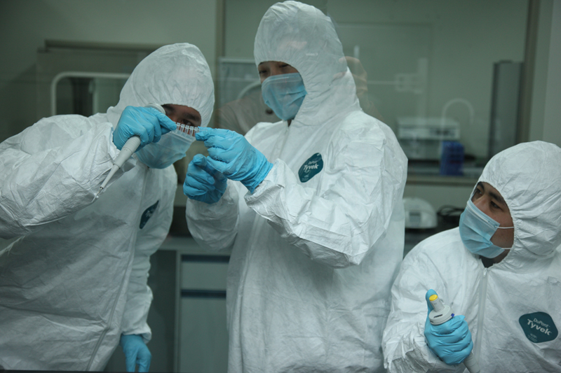 刑侦大队党支部潘引子认真进行痕迹物证检验。