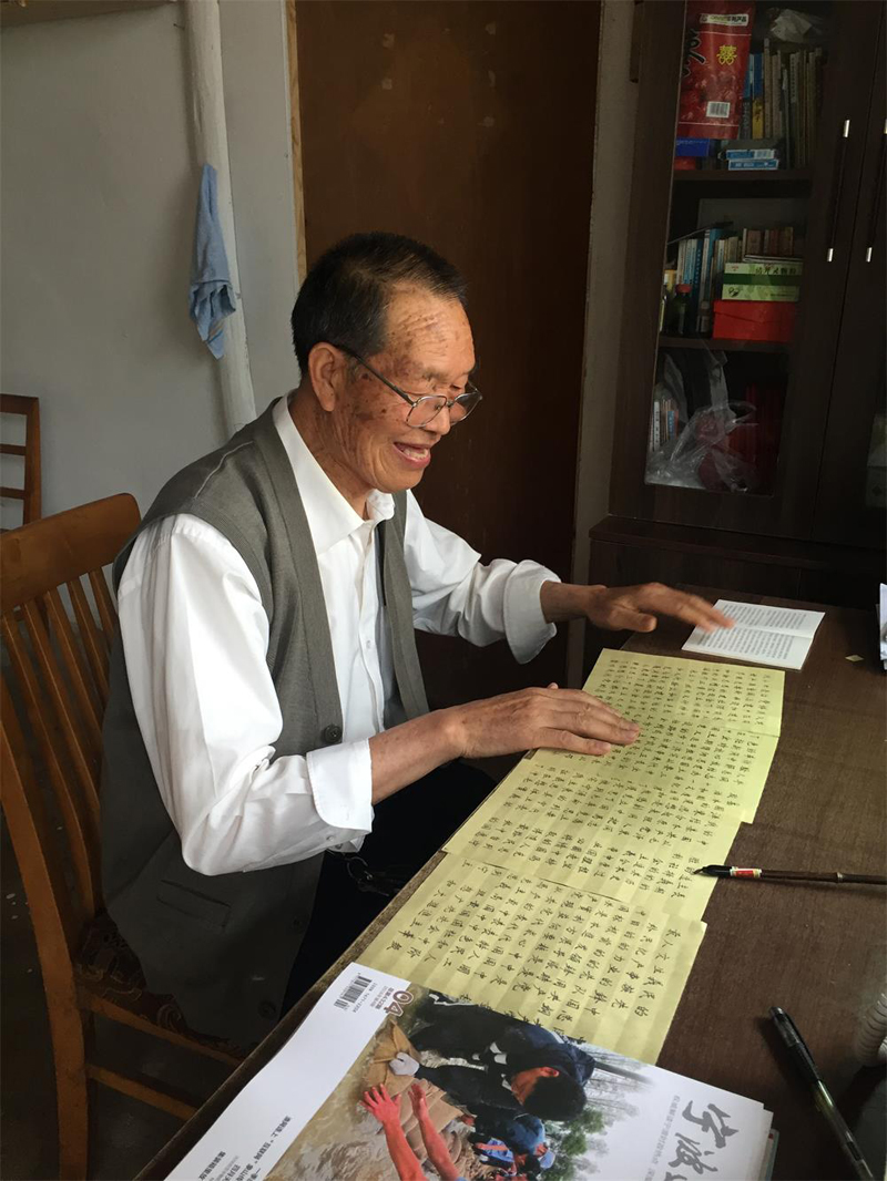 桑洲社区党支部党员章思滚在手抄党章。