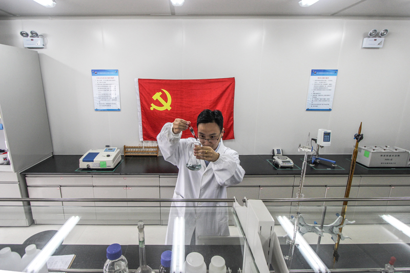 浙能催化剂党支部党员薛东武在实验室认真做测试。