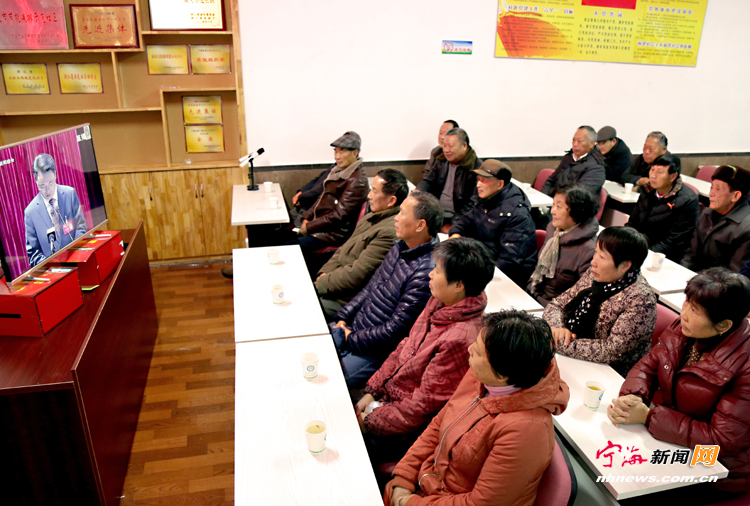 昨日下午,东海社区的居民们正在社区电视室收看县第十四次党代会开幕式直播盛况。