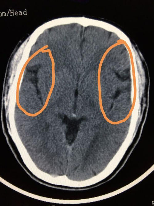 酒精中毒致使脑沟消失(一位医生的微信截图)。