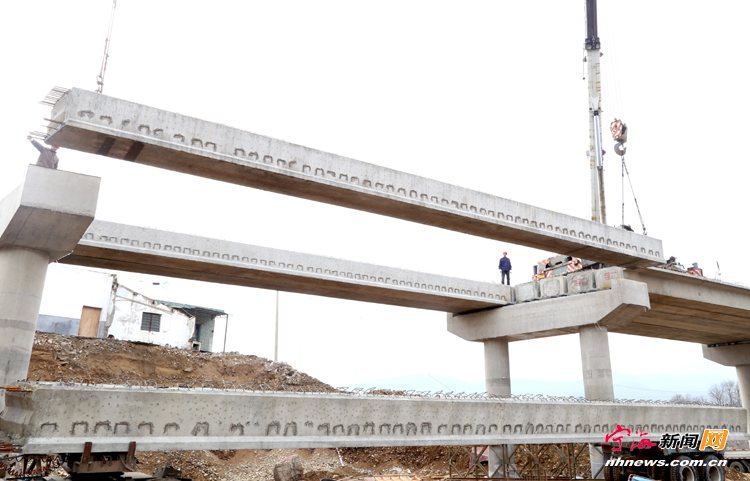 日前,总投资800余万元,全长183.06米,宽8.5米的双溪大桥架梁施工圆满完成。该桥是枫槎岭隧道及接线工程三期南门至下陈段的支路,连接跃龙街道双溪村与下陈村的新桥梁,使用钻孔灌注桩施工,比原计划提前了三个月。据了解,枫槎岭隧道及接线工程三期南门至下陈段将在2017年年底通车。图为施工人员正在架梁。