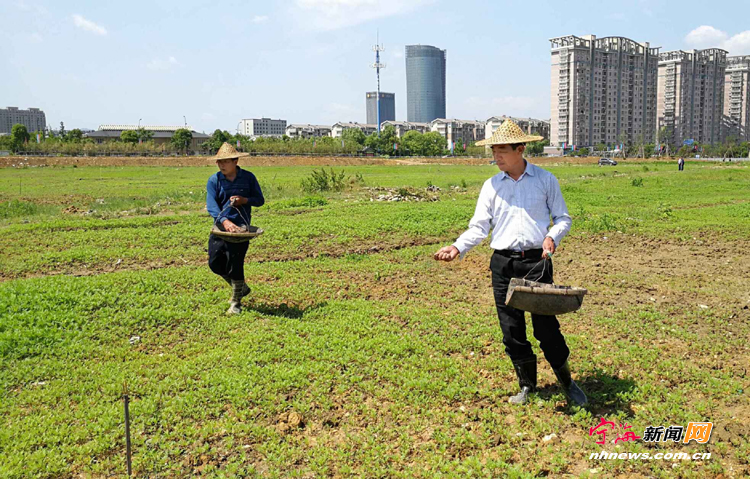 昨日,位于城区天明湖边的新城市中心总部经济区地块里,县城投公司组织园林工人正在播种草花种子。近日,新城市中心总部经济区地块造绿添彩工程在前阶段拆除棚屋与平整土地的基础上,已经开始播种硫华菊、醉蝶花、五色梅等品种草花的作业,预计到7月初这里将呈现一片近14万平方米的花海。