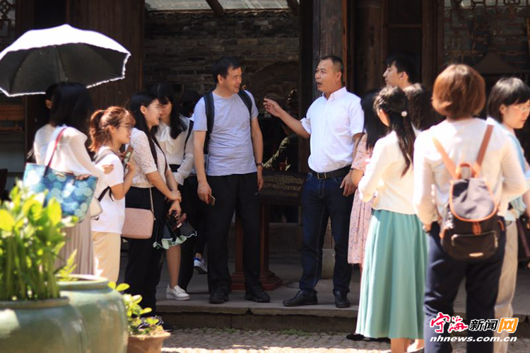 职思其居、泽思居、民俗博物馆……每到一处,吴继盛会在导游讲解的基础上,再详细地为同学们讲述其中的故事。来自沈阳农业大学的王晨是个钟爱旅游的河南姑娘,当然也去过不少古镇,然而像前童古镇这般,将景区与民宅相融合的,她却是第一次遇见。倍感新奇的王晨话虽不多,但却认真听讲解,仔细看每一处细节。“这里不仅将古镇原有的建筑保护得很好,同时还没有过多的现代商业气息,更多的是浓浓的人情味,我很喜欢这里。”王晨对记者说。