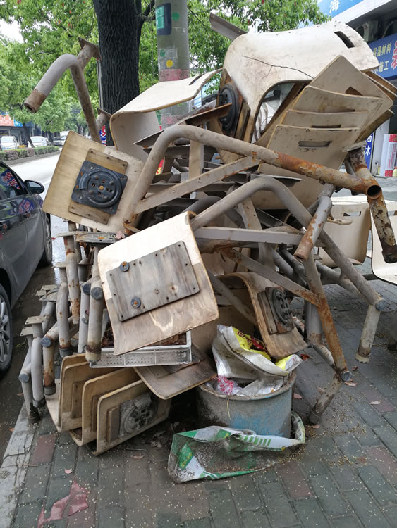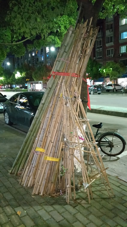 5月11日,网友上传了位于中山东路52号的卫生死角照片,一家葬礼用品店将制作花圈的大量大型竹棒捆绑在人行道树木上,既影响美观又存在安全隐患,灭卫生死角办公室工作人员到现场勘查后,确定责任主体,责令店主及时清理。