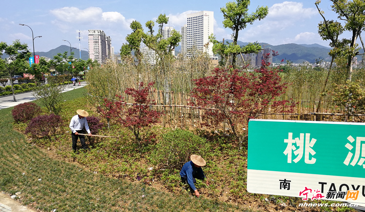 宁海新闻网讯 近日,园林工人正在城区桃源北路段养护绿化景观带。由县城投集团有限公司组织实施的桃源北路、金水路等部分路段的拆墙透绿项目工程,目前已经全部完工。该绿化景观带长1116米,全程宽度在7米以上,已初显效果,为美丽县城建设增加了一道靓丽的风景线。