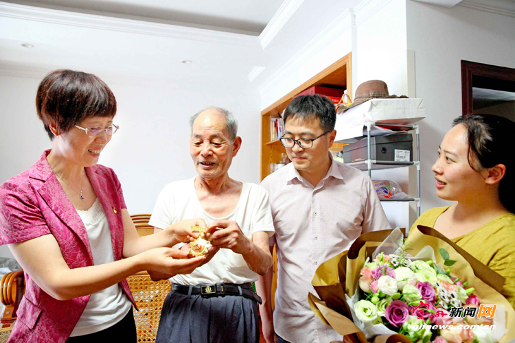 在中国共产党建党96周年来临之际,“七一”前夕,县直机关党工委和县委老干部局联合开展七一慰问离退休老党员活动。工作人员来到90岁高龄的离休老党员杨烈钊家,送上了鲜花和祝福,并将党员纪念勋章送到这位有着60多年党龄的老人手中。