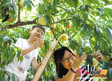 夏天的水果是大自然甜蜜的馈赠,而亲手采摘则为这份甜蜜加上了一份劳动的快乐。到了7月,桃子和葡萄代替枇杷、杨梅重新“上线”,它们在枝头收集了一树的阳光雨露正等着游人去大快朵颐。