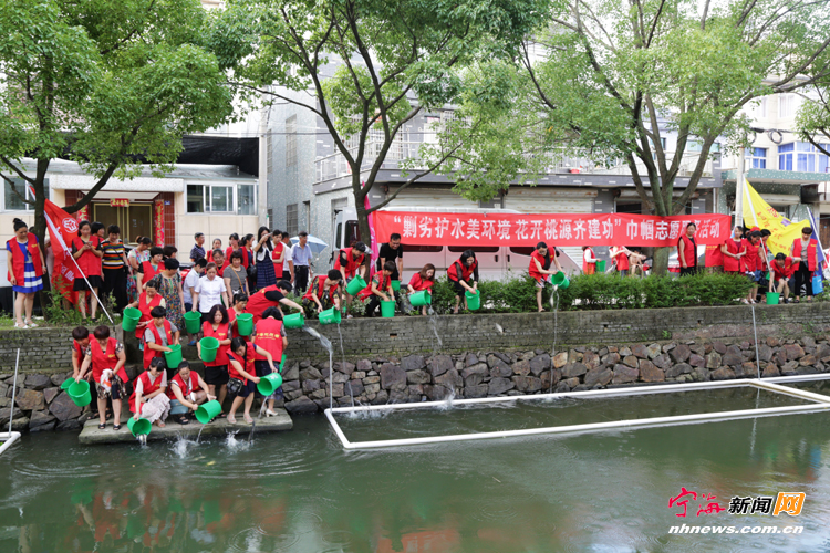 7月10日下午,桃源街道妇联与五水共治办组织开展“剿劣护水美环境花开桃源齐建功”志愿服务活动。来自“青荷护水”绿美桃源志愿服务队和“茉莉芬芳”洁美桃源志愿服务队的巾帼志愿者、党员志愿者、小青荷志愿者共260人到杏蒋村开展五水共治、环境整治、垃圾分类志愿服务和宣传活动。志愿者们向池塘放养鲫鱼、种养水生植物,向村民赠送垃圾分类桶,号召村民和外来务工人员共同爱护环境。