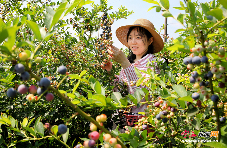 昨日上午,几名游客在桥头胡街道金港果蔬专业合作社采摘蓝莓。金港果蔬专业合作社是目前我县最大的蓝莓种植基地,种植面积近300亩,果树1800余株,有夏普兰、圆蓝等近十个品种,以游客自由采摘为主,每公斤在100元左右。据悉,全县蓝莓种植面积近1000亩,目前已进入成熟期。