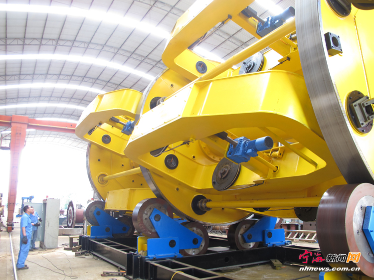 技术创新让凯特机械的产品越做越全,也越做越大。“我们公司的设备既能生产直径1-2毫米的小微钢丝绳,也能生产超长超重超粗的钢丝绳。最大的设备能生产直径200毫米、单根绳重量200吨的钢丝绳。我们制造的最大设备自重达到500吨,最大的单个零件直径有5米,自重50吨。”