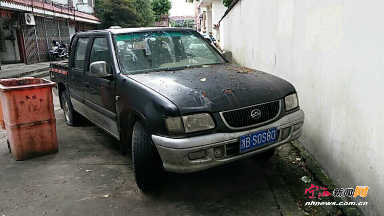 看起来好好的,不知怎么就成了“僵尸车”,摄于县法院南大门。 (长眉罗汉摄)