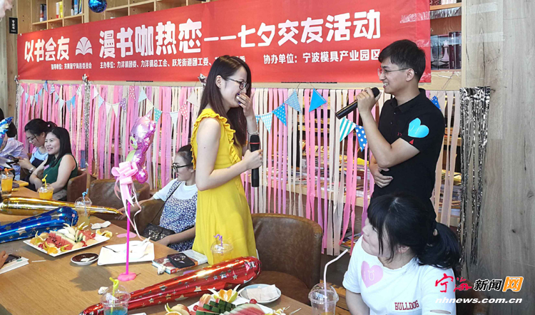 为给适龄青年男女提供一个交流的平台,让他们在浓郁的文化氛围中寻找浪漫的爱情,在七夕节到来之际,力洋、跃龙、茶院等乡镇(街道)团(工)委联合力洋镇总工会、宁波模具产业园区在西子国际漫书咖举办了“以书会友漫书咖热恋”交友活动。青年男女通过猜书名、轮盘大冒险、破冰环节等敞开心扉建立友谊,开启了浪漫的七夕爱情之旅。