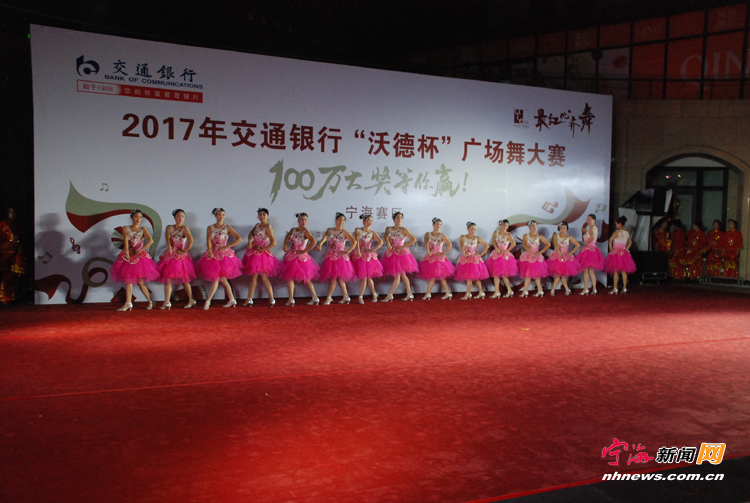 近日,由交通银行宁海支行主办的2017年交通银行“沃德杯”广场舞大赛在西子国际中心广场举行,180名交行宁海支行客户组成的10支舞蹈队参加了此次比赛,活动的开展为我县健身爱好者们搭建了一个交流和展示自我的平台,进一步促进了我县群众文化事业再上新台阶。