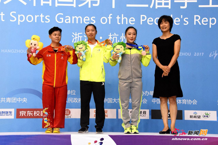 秋高气爽,全国第十三届学生运动会如期在省城杭州举行。西湖的小桥流水遮不住学运会上的激烈拼抢。在大学组武术比赛中,19岁的胡钰莹代表浙江大学队,继9月4日夺得长拳第三名后,又于5日摘取刀术冠军,6日再获棍术第三名、集体项目(剑)第四。