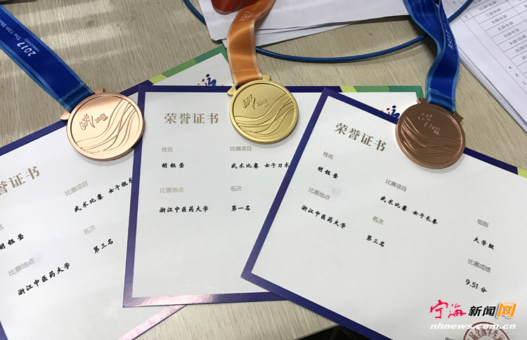 胡钰莹是城郊屠岙胡人,从普通的农家女孩到在国际、国内武术赛事中摘金夺银,这一路走来,可用“宝剑锋从磨砺出,梅花香自苦寒来”形容。连日来,记者采访了这个倔强的女孩以及她的家人——
