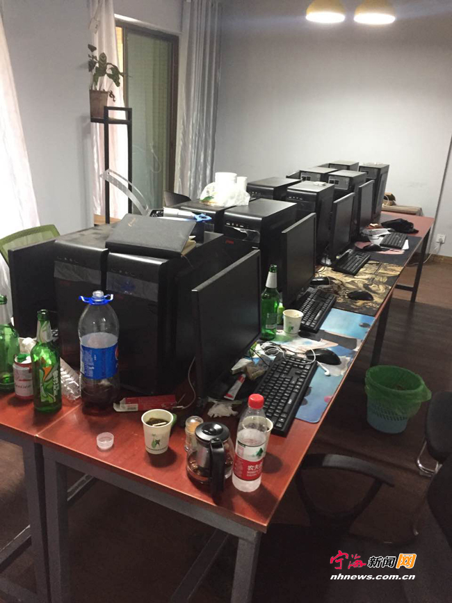 6月13日,专案组民警发现所有犯罪嫌疑人都已经进入窝点,抓捕时机成熟。专案组负责人一声令下,立即动手。在当地警方的大力支持下,专案组在广西南宁、灵山两地实施收网抓捕,成功抓获犯罪嫌疑人蒙某等10人,查获大量电脑、手机、银行卡等涉案物品。经过短暂休整,专案组民警不顾连日来的奋战,又押着抓获的犯罪嫌疑人登上了开往宁海的高铁列车。经过近15个小时的行程,专案组民警顺利将10名犯罪嫌疑人带回宁海。