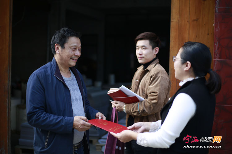 为了深入推进“最多跑一次”改革,确保农房不动产确权登记发证工作顺利进行,梅林国土资源所以岙胡村为试点,试行推出农房不动产权证送证上门服务,让老百姓“一次都不用跑”。图为梅林街道岙胡村村民收到了工作人员送来的首批农房不动产权证。